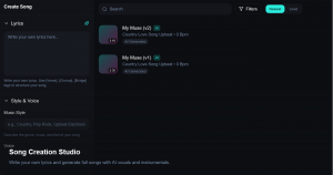 The platform also includes a professional recording studio, AI-powered song creation with over 1,000 voice options, karaoke practice mode with real-time scoring, and automated copyright protection for original compositions.